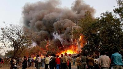 वाराणसी में भीषण आग, चार गैस सिलेंडर फटने से मची अफरा-तफरी