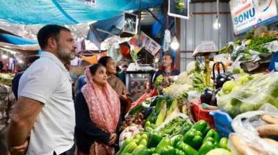 दिल्ली के सब्जी बाजार पहुंचे राहुल गांधी ने कहा- 40 की लहसुन 400 में बिक रही