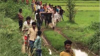 सतना में बदहाल व्यवस्था: कीचड़ से होकर शव को खाट पर ले जाना पड़ा पीएम के लिए