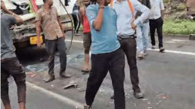 झिरा घाटी में सड़क पर खून ही खून, कंटेनर ने बाइक और कारों को चकनाचूर किया