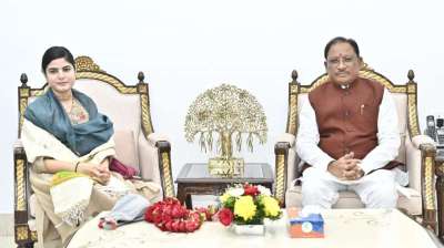 मुख्यमंत्री विष्णु देव साय से प्रसिद्ध कथावाचक देवी चित्रलेखा की सौजन्य भेंट