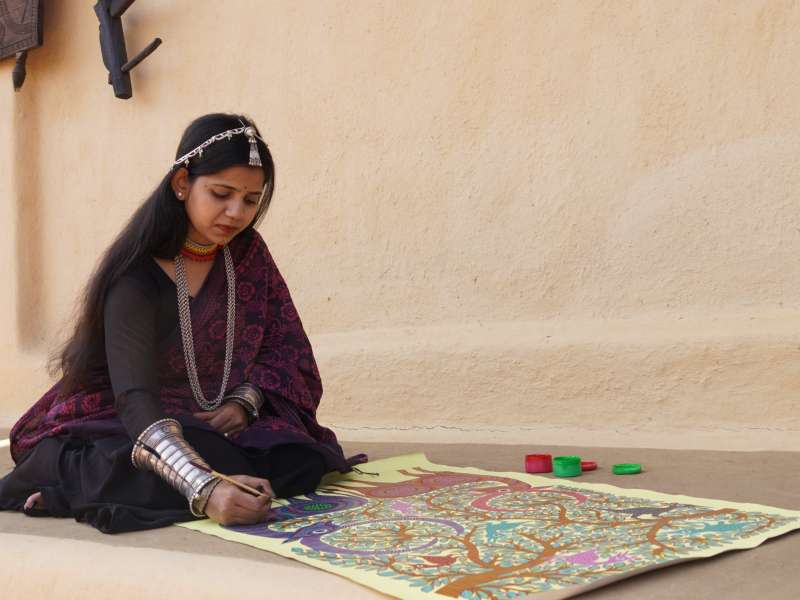 57वीं शलाका जनजातीय चित्र प्रदर्शनी जनजातीय संग्रहालय में भील समुदाय की युवा चित्रकार रीता भूरिया के चित्रों की प्रदर्शनी