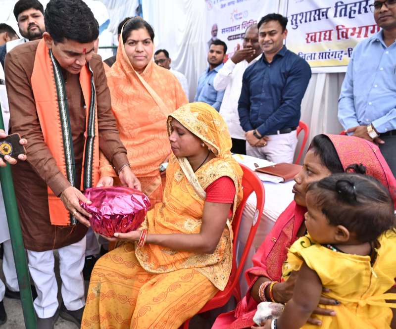 मंत्री वर्मा ने कहा कि आपके द्वार शासन की योजनाओ का पहुंचाया जा रहा है। केंद्र सरकार की योजना छत्तीसगढ़ में पहुंच रही है। राज्य सरकार ने किसानों को रुके हुए दो वर्ष का बोनस भुगतान किया है। महतारी वंदन योजना से विवाहित महिलाओं को एक हजार रुपए प्रतिमाह की सहायता दे रही है। राज्य में विकास की रफ्तार बढ़ी है। किसानों को अब नामांतरण के लिए चक्कर काटना नहीं पड़ेगा। दो दिन पहले ही राज्य सरकार ने नामांतरण के कानून में बदलाव किया है। शिविर में राजस्व विभाग का ज्यादा शिकायत आता है, इसके निवारण के लिए राजस्व विभाग द्वारा अप्रैल मई और जून माह में लगातार राजस्व पखवाड़ा का आयोजन किया जा रहा है। राजस्व कार्यों को लोक सेवा गारंटी में शामिल किया गया है। छत्तीसगढ़ में बजट की कोई कमी नहीं है। केंद्र सरकार द्वारा सारंगढ-बलौदाबाजार-रायपुर के टू-लेन को फोर-लेन सड़क की स्वीकृति दिया गया है। यह कार्य जल्द होगा। भविष्य में क्षेत्र के लोगों को रेल की भी सौगात मिलेगी। कार्यक्रम में महिलाओं की गोदभराई, बच्चों का अन्नप्रासन के साथ-साथ हितग्राहियों को राशन कार्ड, आयुष्मान कार्ड, श्रम कार्ड, मछली जाल, आईसबॉक्स,, बैसाखी, ट्राई सायकल इत्यादि का वितरण किया गया।