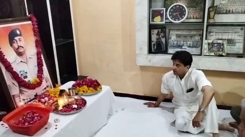 शहीद जवान के घर पहुंचे ज्योतिरादित्य सिंधिया