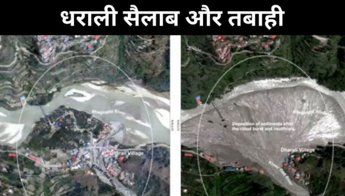 भारतीय अंतरिक्ष अनुसंधान संगठन (ISRO) ने इस तबाही की हाई-रिजॉल्यूशन सैटेलाइट तस्वीरें जारी की हैं। इनमें एक तस्वीर 13 जून 2024 की है और दूसरी 7 अगस्त 2025 की, जिसमें नदी का रास्ता बदलने, डूबी इमारतों और फैले मलबे का भयावह दृश्य साफ नजर आ रहा है।