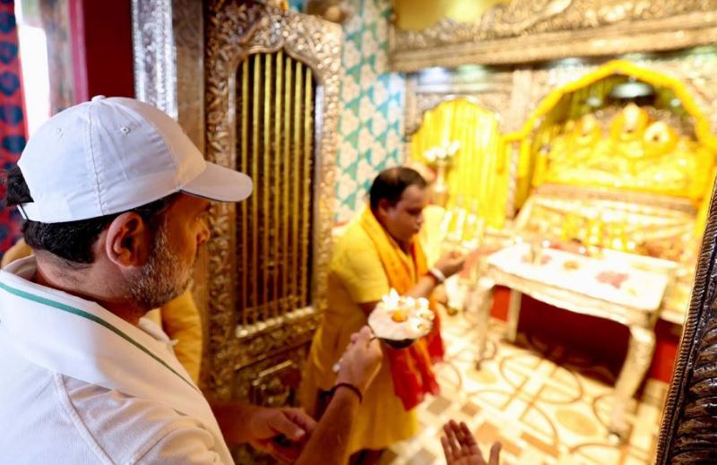 सीतामढ़ी। कांग्रेस नेता राहुल गांधी ने वोटर अधिकार यात्रा के 12वें दिन की शुरुआत सीतामढ़ी से की। गुरुवार को राहुल गांधी जानकी मंदिर पहुंचे और गर्भगृह में जाकर माता की पूजा अर्चना कर आशीर्वाद लिया। लोकसभा में नेता विपक्ष राहुल गांधी ने जानकी मंदिर में माता के दर्शन किए और पूजा-अर्चना कर देश की सुख-समृद्धि के लिए प्रार्थना की। इस दौरान मंदिर के पुजारी ने मंदिर की पूरी जानकारी दी। राहुल गांधी के साथ सांसद पप्पू यादव, कांग्रेस के प्रदेश अध्यक्ष राजेश राम सहित महागठबंधन के कई नेता थे। सभी ने माता जानकी की पूजा अर्चना की।