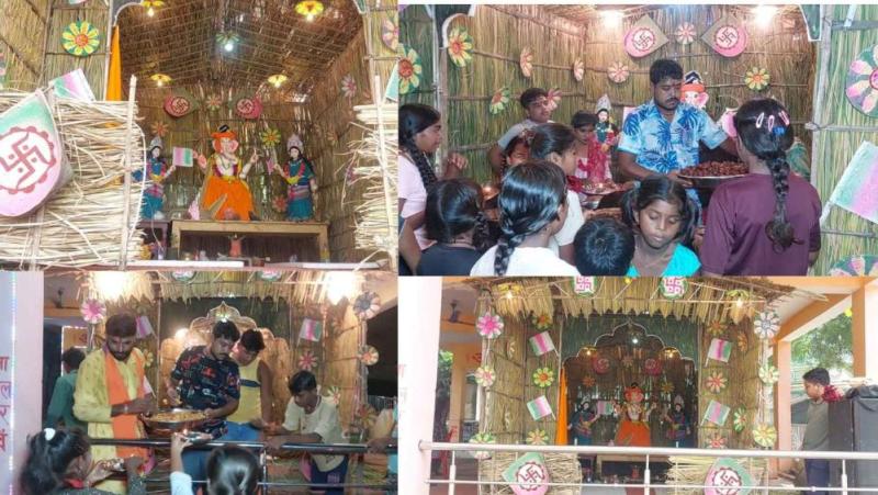 पंडाल में सांस्कृतिक कार्यक्रमों का भी आयोजन हो रहा है। नृत्य और खेल प्रतियोगिताओं से माहौल और भी जीवंत हो गया है। आयोजकों के मुताबिक, पंडाल तैयार करने में करीब एक सप्ताह का समय लगा और घास पास के गांवों से जुटाई गई।