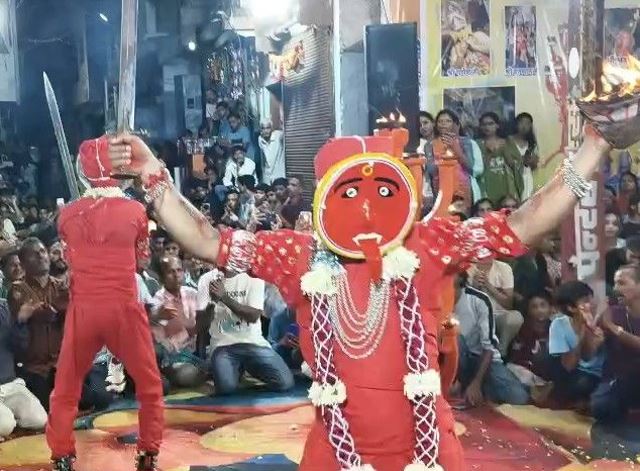 गुरुवार सुबह भगवान नरसिंह और राक्षसराज हिरण्यकश्यप की झांकी निकाली गई, जिसके बाद महाकाली की भव्य शोभायात्रा संपन्न हुई। इस आयोजन का समापन भगवान नरसिंह द्वारा हिरण्यकश्यप वध के साथ हुआ। इस परंपरा की विशेषता यह है कि मां अम्बे और मां महाकाली का वेश केवल एक ही कुल के लोग धारण करते हैं। इस वर्ष संतोष भावसार ने मां महाकाली की भूमिका निभाई, मोहित बसंत भावसार ने भगवान नरसिंह, सुनील भावसार ने हिरण्यकश्यप, अक्षय धारे ने महाकाली के सिंह, दिव्यांश भावसार और शशिकांत पटेल ने क्रमशः गणेश और हनुमान का रूप धारण किया।