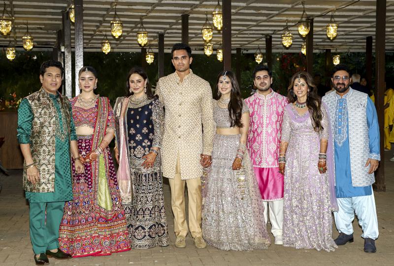 Arjun Tendulkar Wedding: भारत के पूर्व स्टार क्रिकेटर सचिन तेंदुलकर के बेटे अर्जुन तेंदुलकर ने 5 मार्च 2026 को शादी के बंधन में बंध गए हैं. अर्जुन की शादी साउथ मुंबई में एक प्राइवेट समारोह में सानिया चंडोक से हुई. जहां परिवार के सदस्य, करीबी दोस्त और अलग-अलग क्षेत्रों के जाने-माने चेहरे नए जोड़े को बधाई दी. इस कपल ने पिछले साल 25 अगस्त को सगाई की थी.इस हाई प्रोफाइल विवाह समारोह में क्रिकेट से जूड़े कई बड़ी हस्तियां भी शरीक हुई. जिसमें सुनील गावस्कर, एमएस धोनी, युवराज सिंह, जहीर खान, अनिल कुंबले और इरफान पठान जैसे नाम शामिल हैं. भारत के पूर्व कप्तान एम धोनी अपनी पत्नी साक्षी धोनी के साथ समारोह में पहुंचे, और सेलिब्रेशन के लिए तेंदुलकर परिवार के साथ शामिल होकर खूब ध्यान खींचा.भारत के हेड कोच गौतम गंभीर भी अपनी पत्नी नताशा जैन के साथ मौजूद थे, और उसी शाम इंग्लैंड के खिलाफ भारत के टी20 वर्ल्ड कप सेमीफाइनल से पहले मुंबई में अपने समय का पूरा इस्तेमाल किया.इसके अलावा भारतीय क्रिकेट के महान ओपनर सुनील गावस्कर अपनी पत्नी मार्शनील गावस्कर के साथ शामिल हुए, जबकि भारत के पूर्व हेड कोच राहुल द्रविड़, पूर्व कप्तान अनिल कुंबले और भारत के पूर्व कोच रवि शास्त्री खास मेहमानों में शामिल थे. इंटरनेशनल क्रिकेट काउंसिल (ICC) के चेयरमैन जय शाह और भारतीय क्रिकेट टीम के चीफ सिलेक्टर अजीत अगरकर भी अपनी पत्नी के साथ शादी में शामिल हुए.क्रिकेटरों के अलावा बॉलीवुड से भी कई बड़ी हस्तियां विवाह समारोह में शामिल हुए. एक्टर अभिषेक बच्चन अपनी पत्नी ऐश्वर्या राय बच्चन और परिवार के सदस्यों के साथ पहुंचे. इसके अलावा किंग खान शाहरुख खान भी अपनी पत्नी संग समारोह में शरीक हुए.