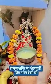 प्रथम नवरात्रि 19 मार्च को है। इस दिन मां शैलपुत्री की पूजा की जाती है। उनका प्रिय भोग घी है। आप घी से बने व्यंजन या मिठाई मां के सामने भोग के रूप में समर्पित कर सकते हैं। घी रोगों से मुक्ति और स्वास्थ्य लाभ के लिए फलदायी होता है।