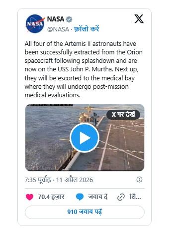 NASA Artemis I Mission सफल: चंद्रमा की परिक्रमा कर पृथ्वी पर सुरक्षित लौटा यान