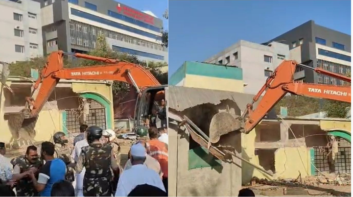 इंदौर। मध्य प्रदेश के सबसे बड़े सरकारी अस्पताल एमवाय अस्पताल परिसर में अवैध कब्जा कर बनाई गई मस्जिद के हिस्से पर शनिवार सुबह प्रशासन ने बड़ी कार्रवाई की. तड़के ही दो पोकलैंड मशीनों, चार डंपरों और एक दर्जन से अधिक पुलिस वाहनों के साथ राजस्व और नगर निगम का अमला मौके पर पहुंच गया. प्रशासन ने सख्त रुख अपनाते हुए मस्जिद की अवैध बाउंड्री वॉल और परिसर के अंदर बने बड़े टीन शेड को जमींदोज कर दिया. प्रशासन का कहना है कि अब इस जमीन का उपयोग गरीब मरीजों के इलाज और सुविधाओं के विस्तार के लिए किया जा सकेगा।