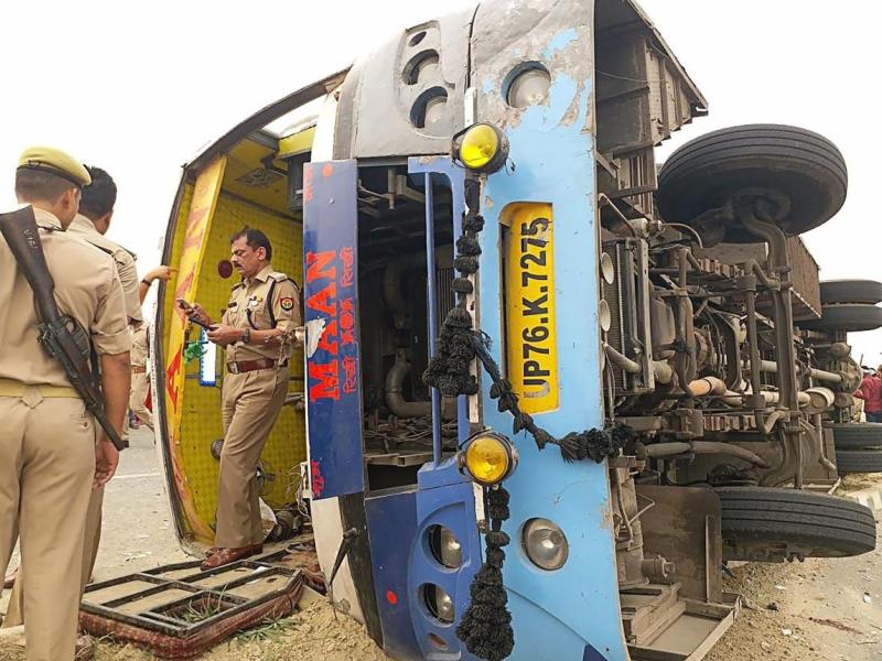 पूर्वांचल एक्सप्रेस-वे पर बस दुर्घटना, घायलों को नजदीकी अस्पताल में भर्ती कराया गया