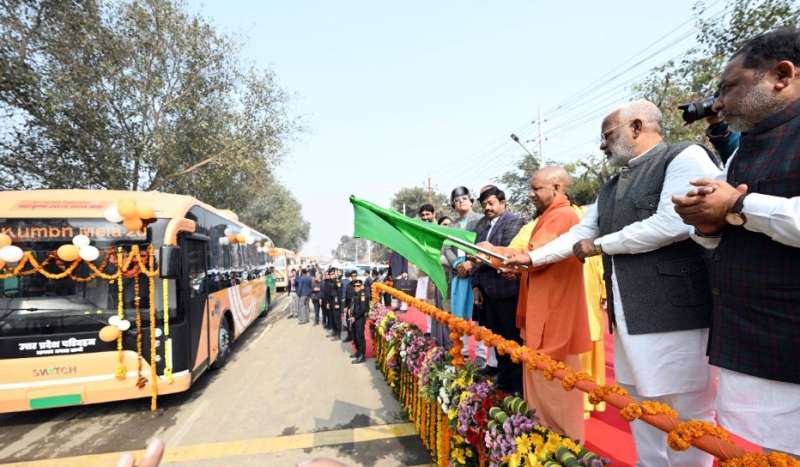 मुख्यमंत्री योगी ने प्रयागराज में 100 नई बसों को हरी झंडी दिखाकर रवाना किया