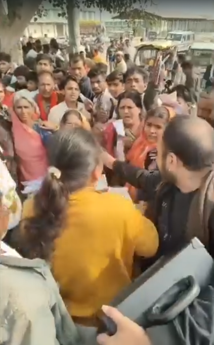 सटई रोड मंडी पर खाद के लिए लाइन में खड़ी महिला किसानों से नायब तहसीलदार ऋतु सिंघाई द्वारा मारपीट का आरोप।