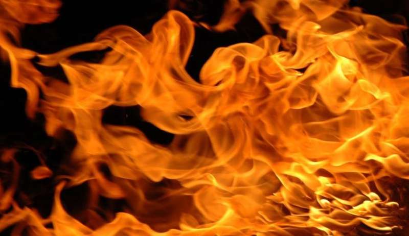ग्राउंड फ्लोर से उठी आग की लपटें