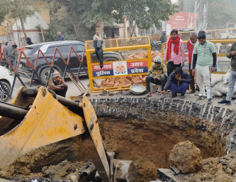 महाकुंभ मेला से पहले लखनऊ-प्रयागराज स्टेट हाईवे की सड़क धंसी