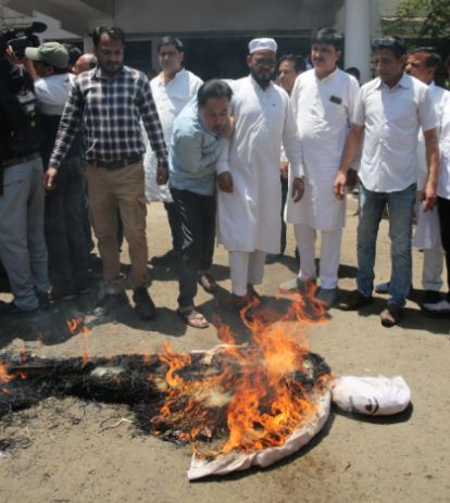 पहलगाम आतंकी हमले के विरोध में भोपाल में प्रदर्शन, आतंकवाद का पुतला दहन