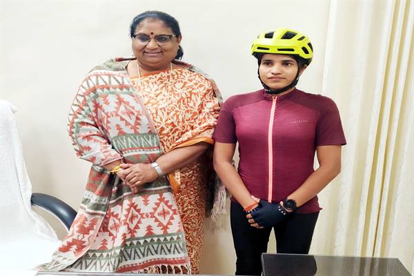 मंत्री भूरिया से मिली सोलो महिला साइक्लिस्ट आशा मालवीय