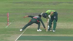 गेंद को रोकने के लिए मिराज आगे बढ़े और अपने पैर से उन्होंने इसे रोका। इस दौरान नॉन स्ट्राइकर एंड पर खड़े सलमान आगा क्रीज से बाहर निकले हुए थे। चूंकि गेंद सलमान आगा के पास रुक गई थी तो उन्हें लगा कि गेंद पूरी हो गई है। लेकिन मिराज ने तत्परता दिखाते हुए गेंद को स्टंप्स की ओर मारा और रन आउट की अपील कर दी।