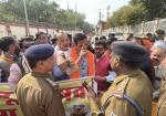 अवैध बूचड़खानों के खिलाफ हिंदू संगठन का निगम घेराव, पुलिस रोकने पर हनुमान चालीसा पाठ -