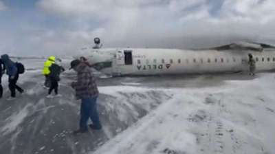 टोरंटो में डेल्टा एयरलाइंस का विमान क्रैश, लैंडिंग के दौरान पलटा