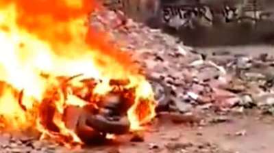कानपुर में स्कूटी स्टार्ट न होने पर युवक ने गुस्से में अपनी स्कूटी को किया आग के हवाले